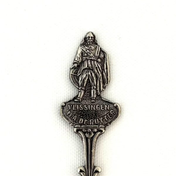 Zilverkleurig lepeltje met reliëf afbeelding van Michiel de Ruijter.
