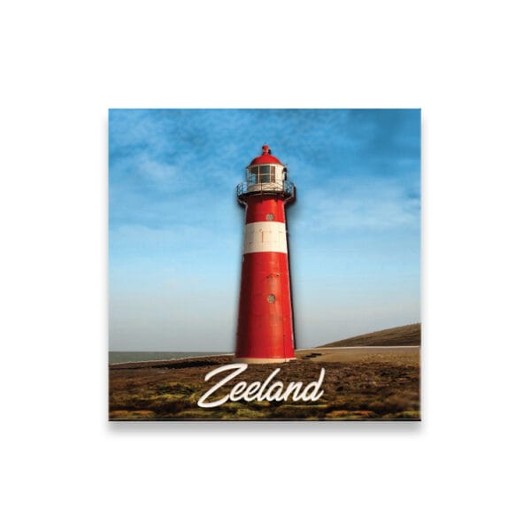 Een stevige magneet gemaakt van hout met de afbeelding van de vuurtoren ’t Lage Licht uit Westkapelle