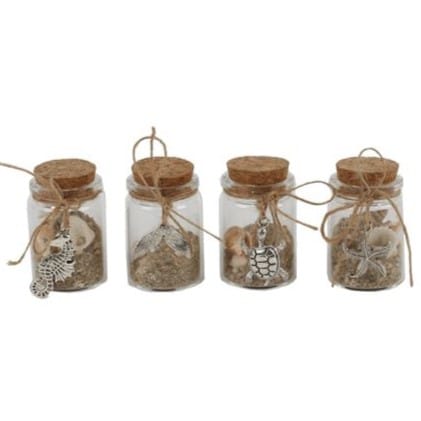 Leuk flesje gevuld met schelpen en zand, met een nautische hanger. Ook verkrijgbaar in een grotere variant.