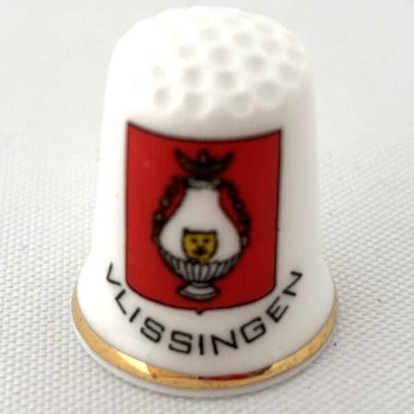 Mooi porseleinen vingerhoedje met de afbeelding van het wapen van Vlissingen.