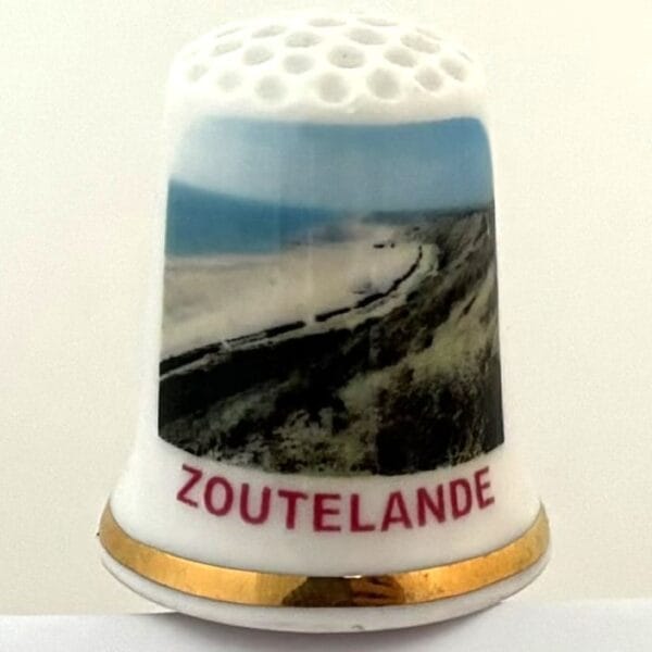 Mooi porseleinen vingerhoedje met de afbeelding van de duinen van Zoutelande.