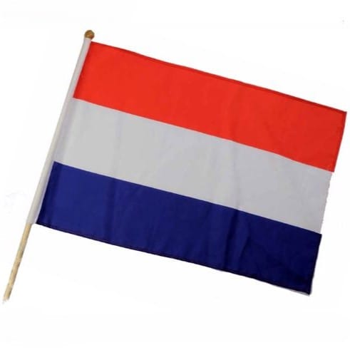 Stokvlag met rood, wit, blauw. Afmeting 30×45 cm.