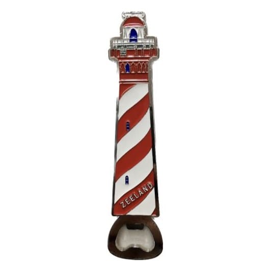 Een mooie stevige opener met aan de achterzijde een krachtige magneet. In de vorm van de vuurtoren van Burgh-Haamstede.