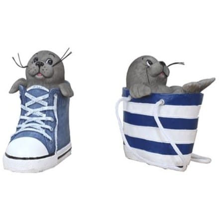 Deze handige spaarpot is verkrijgbaar in een versie met een zeehond in een tas en een zeehond in een sneaker.