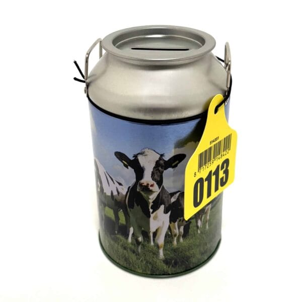 Ware lekkernij van en voor de boerderij. Een schitterend KOE-kblik gevuld met Zeeuwse amandelkoekjes.