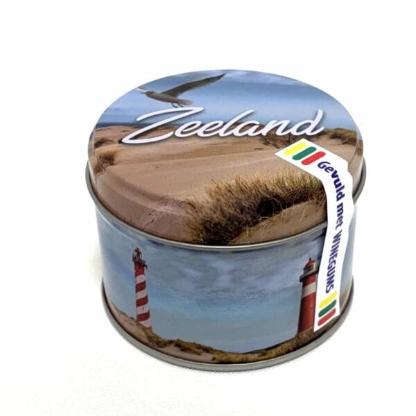 Heerlijke winegums in een leuk blikje met de Vuurtorens van Zeeland erop.